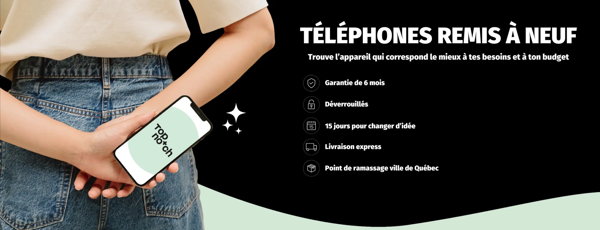 On est une entreprise québécoise qui s’est donné comme mission de t’offrir ce qu'il y a de mieux pour ton téléphone seconde main et ton forfait mobile.